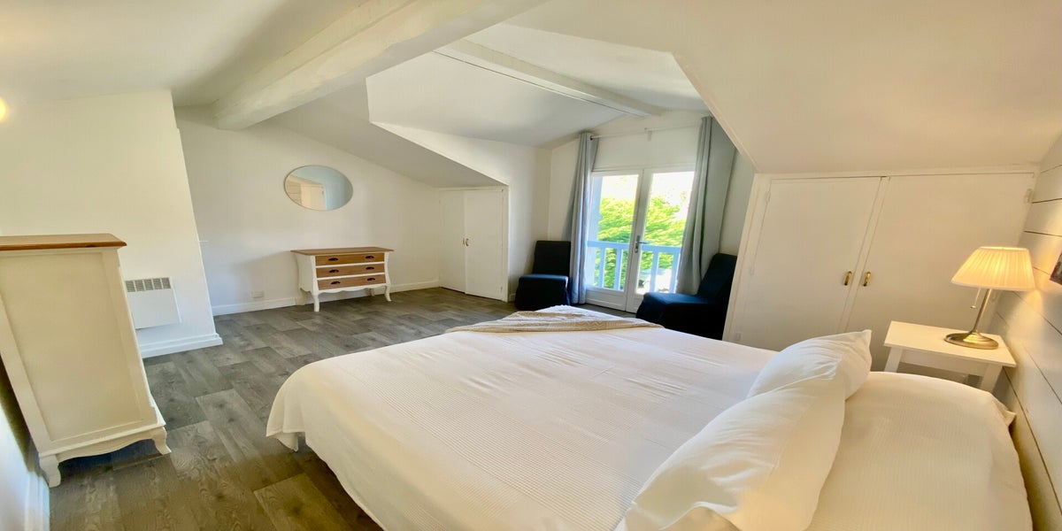 Une première chambre en rez-de-chaussée exposée au sud s'ouvre sur la terrasse et le jardin. La seconde à l'étage est exposée au nord.